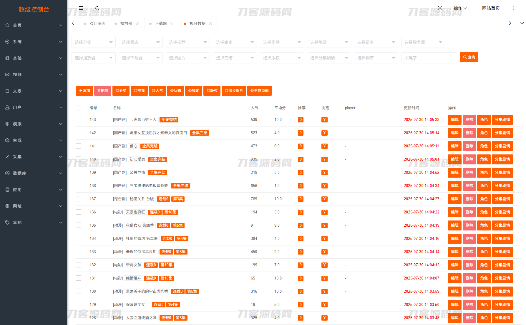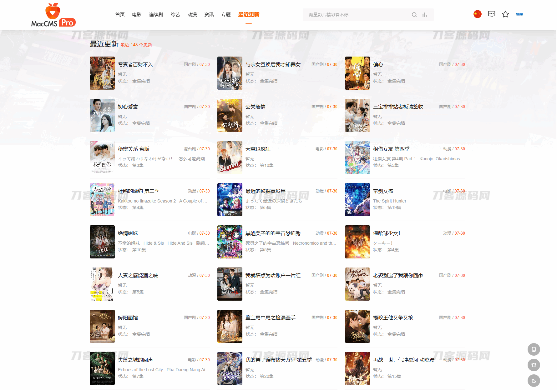 最新Pro版视频影视系统源码 含9套模板-小酒源码