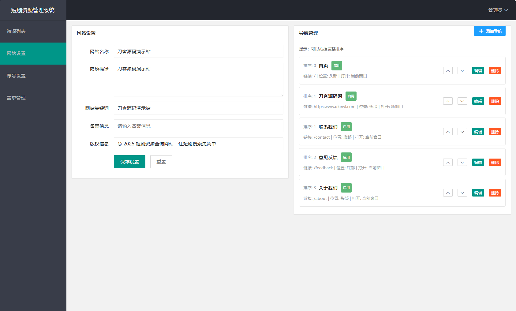 网盘短剧资源转存项目源码 支持夸克 带后台 附教程admin前天更新关注私信04934网盘短剧资源转存项目源码 支持夸克 带后台 附教程此内容为免费资源,请登录后查看¥0 登录查看免费资源 简介: 网盘短剧资源转存项目源码 支持夸克 带后台 附教程 安装教程: 测试环境:Nginx + PHP7.4 + MySQL5.7 数据库信息配置文件:.env 网站运行目录设置为:public 图片: © 版权声明文章版权归作者所有,未经允许请勿转载。THE END创业资源 喜欢就支持一下吧点赞34 分享QQ空间微博QQ好友海报分享复制链接收藏